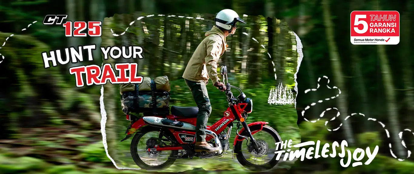 Honda CT125 merupakan ikon motor bebek trekking legendaris dengan desain tangguh dan tak lekang oleh waktu, dilengkapi penyematan teknologi modern. Model ini diperkenalkan untuk mereka yang ingin motor bebek ikonik yang nyaman digunakan di perkotaan dan tangguh saat turing santai menyenangkan menikmati alam.